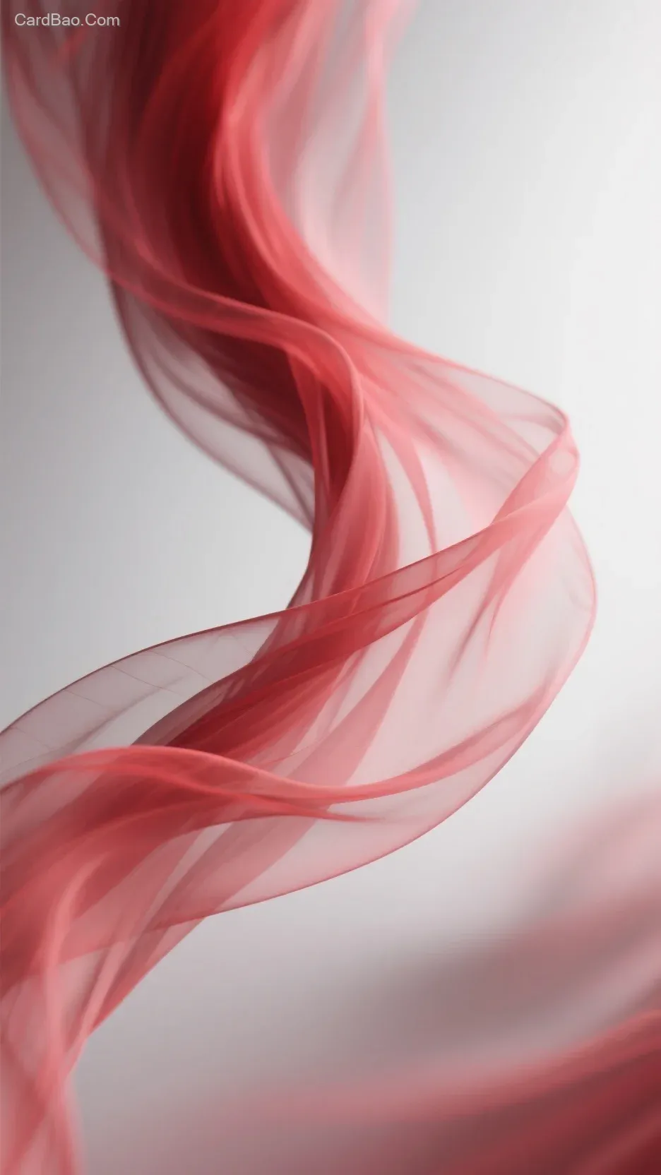 A delicate silk fabric, as thin as a cicada's wing, extremely translucent, with a gradient from deep red to light pink, conveying a sense of ethereal lightness, with a blurred background, digital art