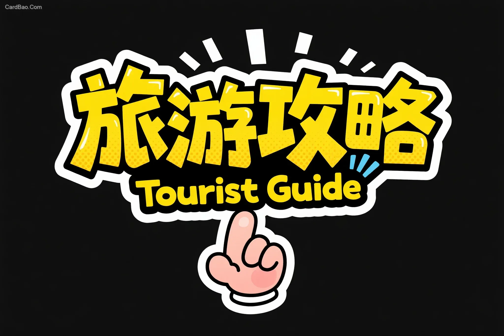字体,logo设计,漫画字体,字体内容“旅游攻略”,漫画纹理,胖嘟嘟可爱感觉,黑色背景。卡通感十足