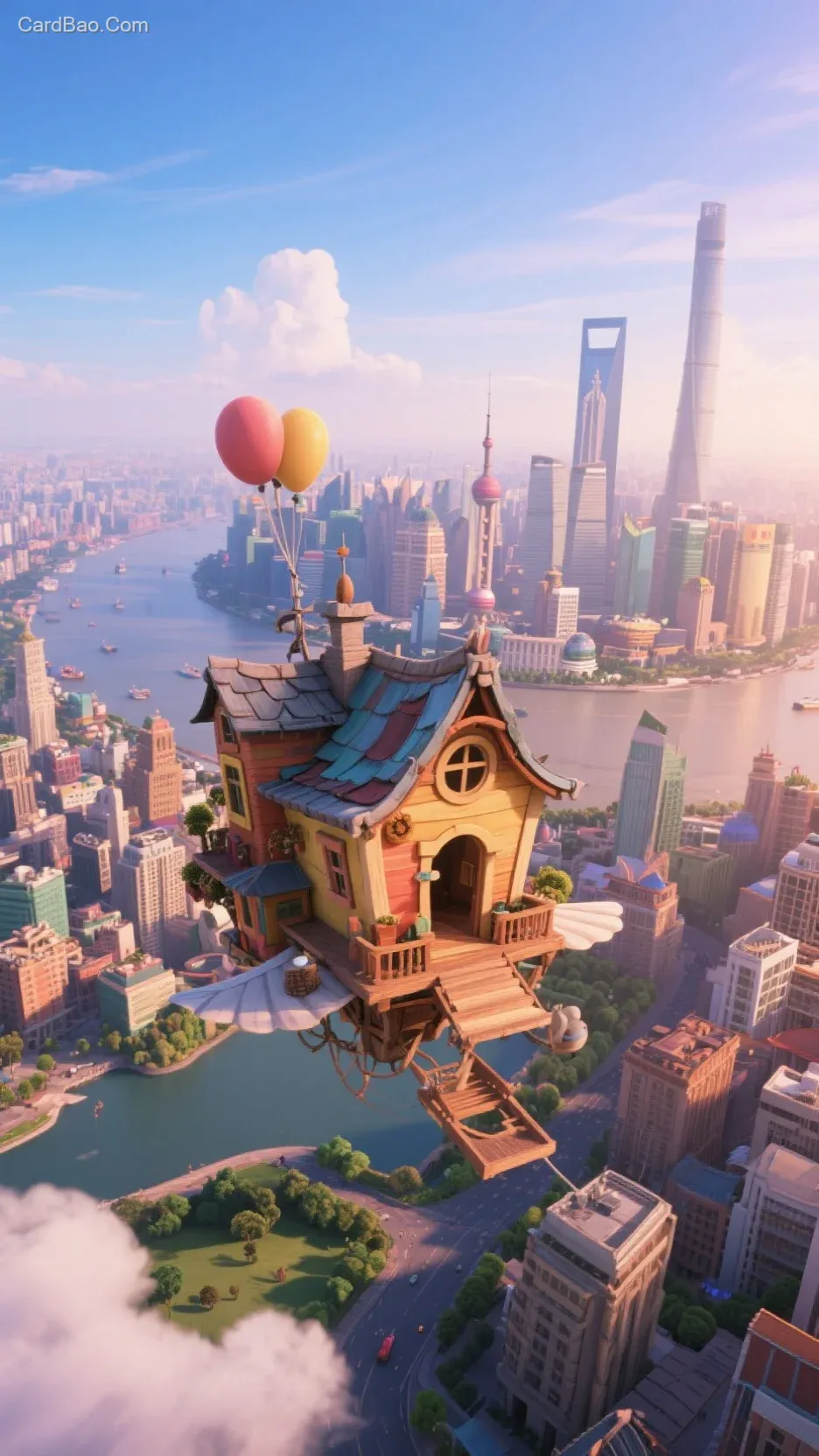 *Up*, from the perspective of the flying house, overlooking Shanghai.