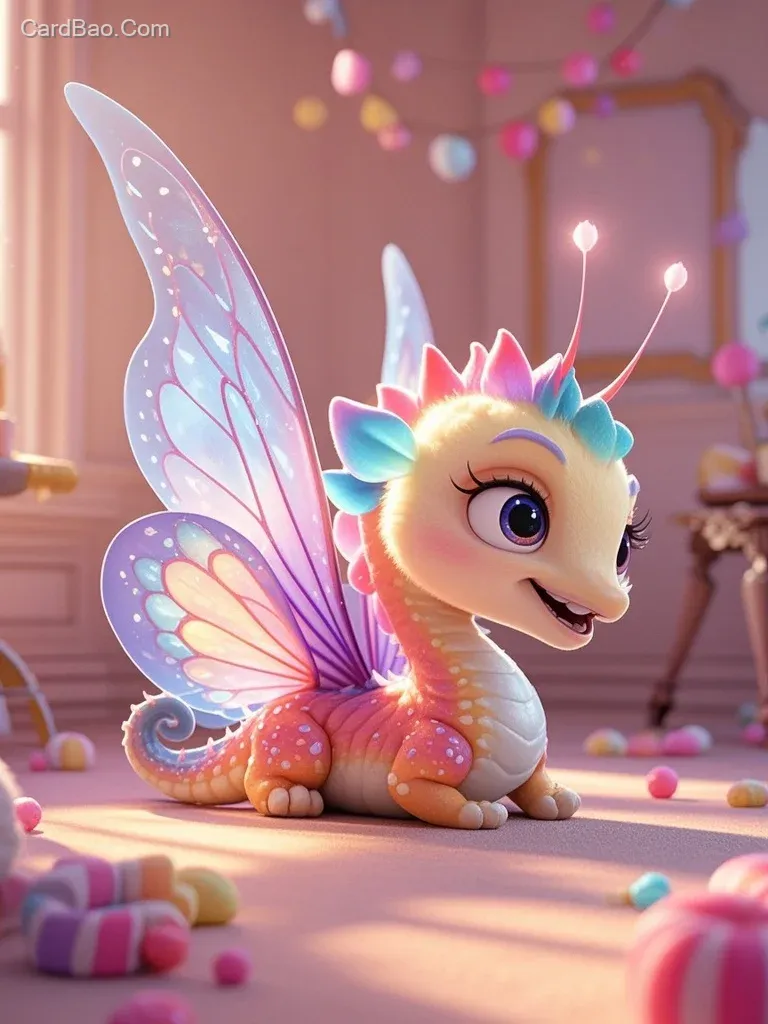 Please help me generate a sprite pet with elements of seahorse feathers and butterfly wings, embodying spirituality, intelligence, cleverness, cuteness, and sincerity. It should have a pair of smiling, joyful eyes. The background should be simple and clean.