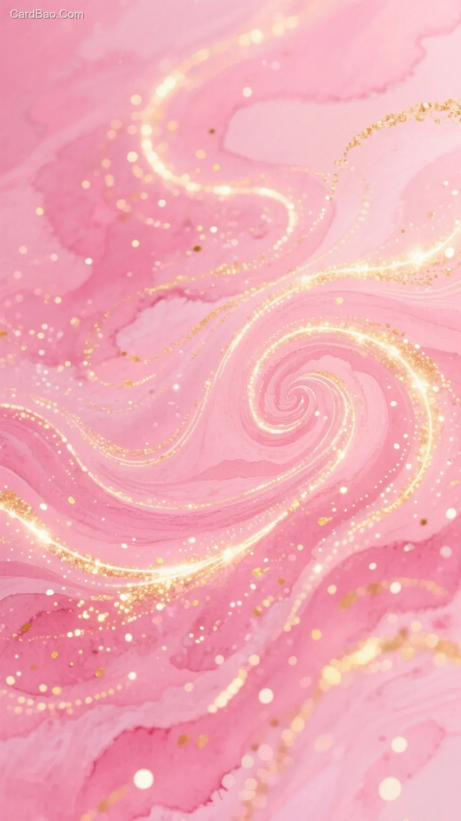 发光粒子流动形成线,构成随机波浪和漩涡的高清图片。风格上借鉴大师作品,呈现出混沌、随机的视觉效果,色彩以发光粒子的亮色为主,在构图上让波浪和漩涡随机分布,突出整体的动态感。粉色系背景图,运用水彩晕染风格,融入金色发光粒子,营造出朦胧、梦幻唯美的氛围。色彩以粉色为主调,搭配金色增添华丽感,构图上让水彩和粒子自然分布。