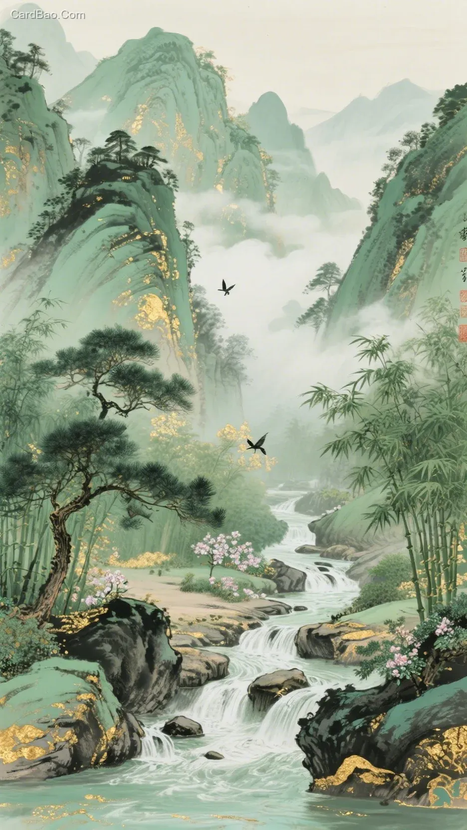 雾锁峰头添秀色,云栖谷底隐清泉。