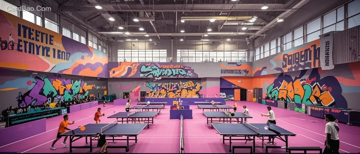 Adopt high-saturation colors (such as pink, orange, and purple) to create a vibrant atmosphere that aligns with the dynamic nature of table tennis, while also enhancing spatial recognition. The color combinations are thoughtfully designed—for instance, a purple venue incorporates brand elements to convey cultural associations through color, while an orange-and-gray venue uses linear patterns to break monotony and enrich visual layers.
