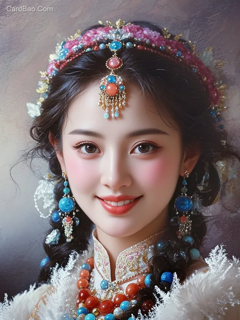 精致的五官,温柔浅笑,美人香妃,美人半身肖像油画,皮肤细腻光滑,妆容淡雅清新,突出自然美感 。空灵的气氛,巧妙地捕捉情感,杰作,柔和,高分辨率,景深构图,层次32k高清蓝光。3d效果。油画风格。