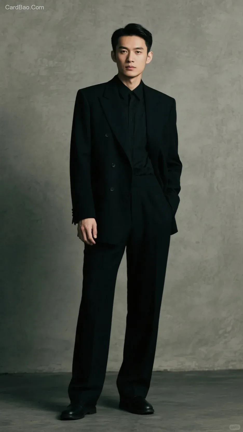 A 30-year-old Chinese man, full-body shot, sophisticated and shrewd.