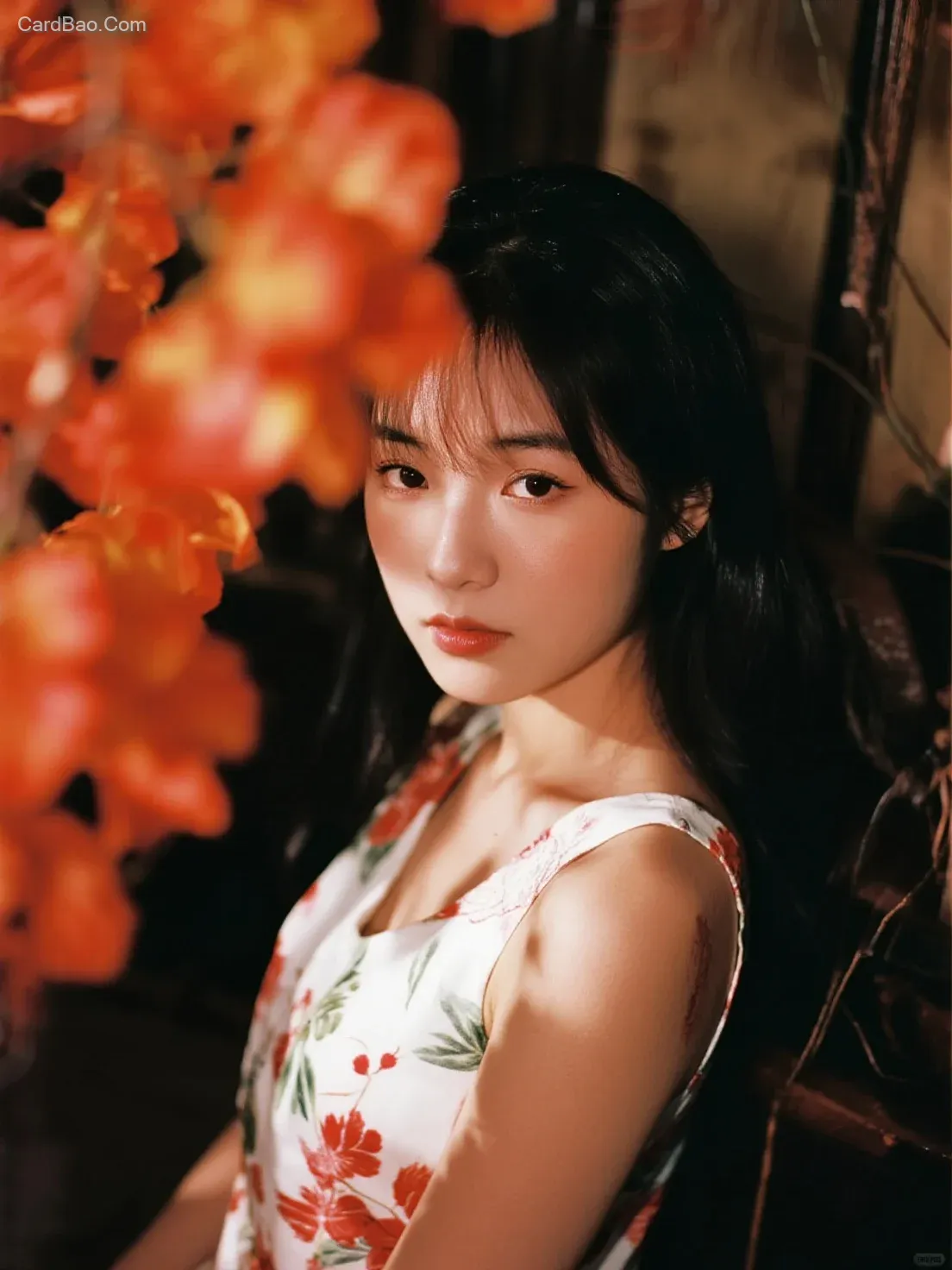 Araki-style portrait photography, using Kodak Ektachrome 64 film, featuring a decadent yet healing atmosphere, a natural and tranquil vibe, mottled and dreamlike light and shadow, a sense of breathability, dreamcore aesthetics, iridescent and radiant colors, extreme light and shadow artistry, a fusion of Eastern and Western artistic elements, unique film grain texture, unconventional composition, poetic undertones, white and orange accents, dark and gothic themes, nocturnal settings, motion blur, out-of-focus effects, high-contrast and high-saturation color storytelling, faded memories, distant nostalgia, unrestrained freedom, chaotic elements, emotional tension, and masterful execution.