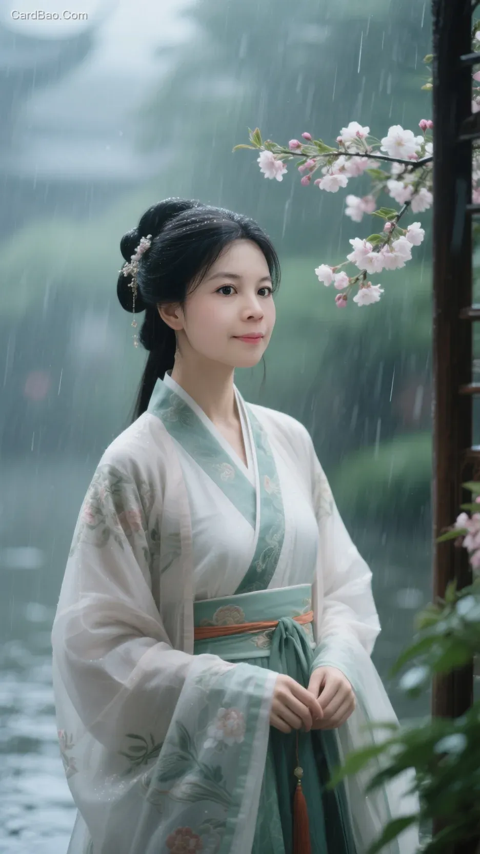 昨夜雨疏风骤,浓睡不消残酒。试问卷帘人,却道海棠依旧。知否,知否?应是绿肥红瘦。图中人物用现代人,人物真实,超高清画面,东方意境之美
