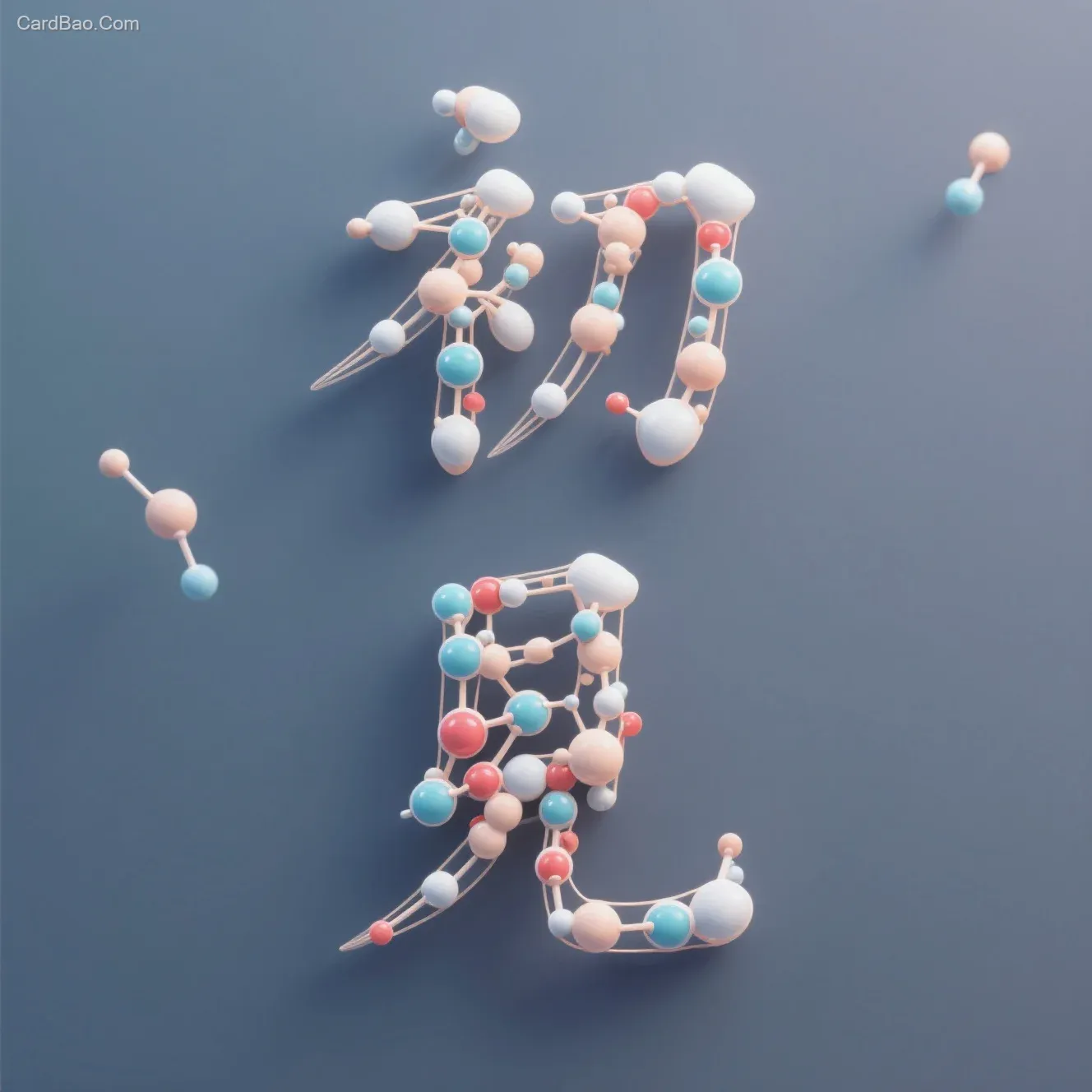 由分子元素组成的中文正楷书法字体'初见',融合完美,真实感十足,纯色背景,用途艺术设计图,3D高清风格,特写镜头,唯美氛围,8k画质