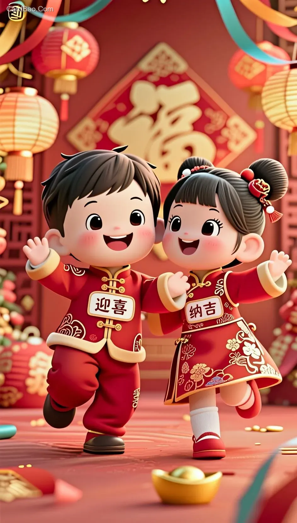 ##把男孩身上的文字改为“迎喜”