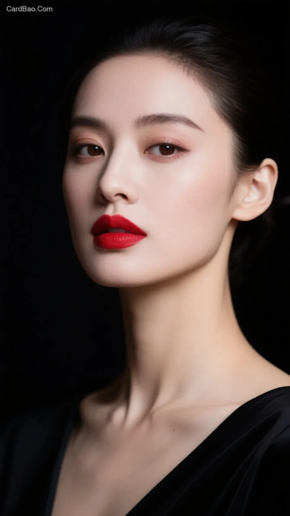 Noble and beautiful! Bright red lips! Dark background! Photographer's creation! Cool and elegant! High-definition cinematic quality!