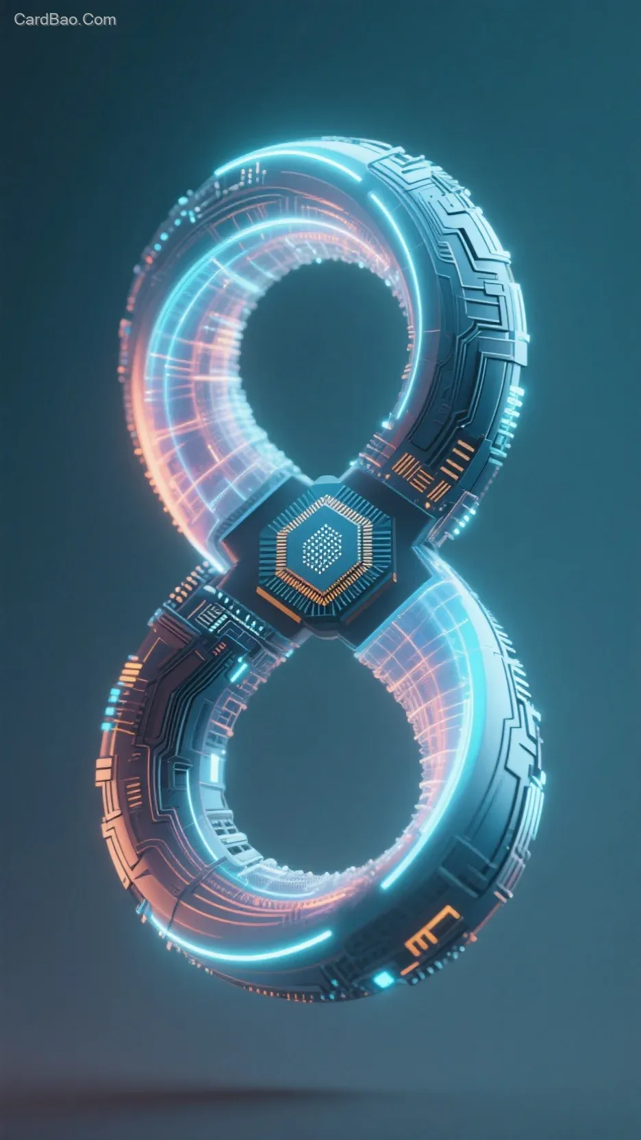 8字拆解为交错的莫比乌斯环,边缘生长出纳米电路纹理