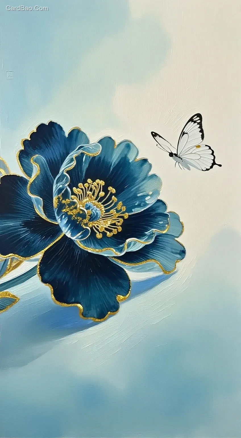 ##油画重彩,色彩饱满,青色花朵。暗色花朵,色彩晕染,笔触细腻,水墨渲染。泼金点缀,厚涂肌理感,颗粒感,生动自然,超高清,细节丰富,优化光影处理技巧娴熟,色层叠加。高级渲染技术。艺术照,氛围感。