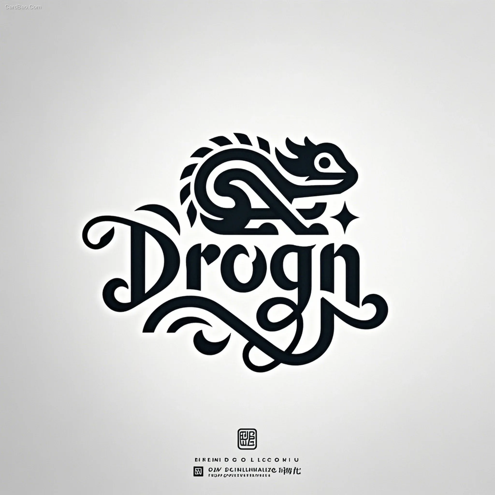 LOGO设计,简洁的艺术线条勾勒出一只抽象的龙,它的身体由几何线条构成,形态扁平而富有个性。上方盘绕着手写体的单词“drogn”,字母设计流畅而具有装饰性,与变色龙的形象巧妙融合。整体风格简约现代,黑白的配色更突显出线条的力度和设计的趣味性。画面干净,光线均匀,凸显出黑白对比的艺术感。