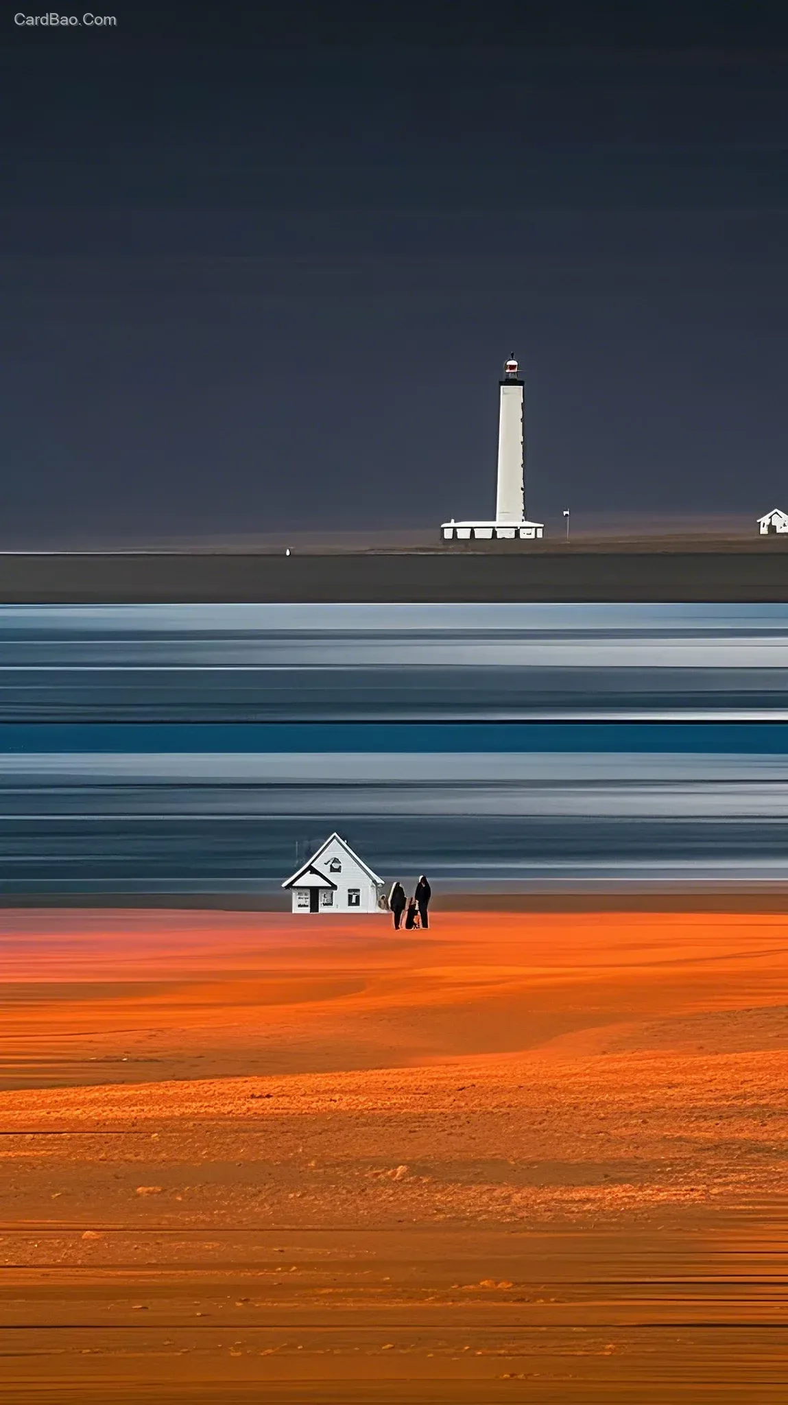 Chromatic Shore: Lighthouse & Orange Sand Cottage