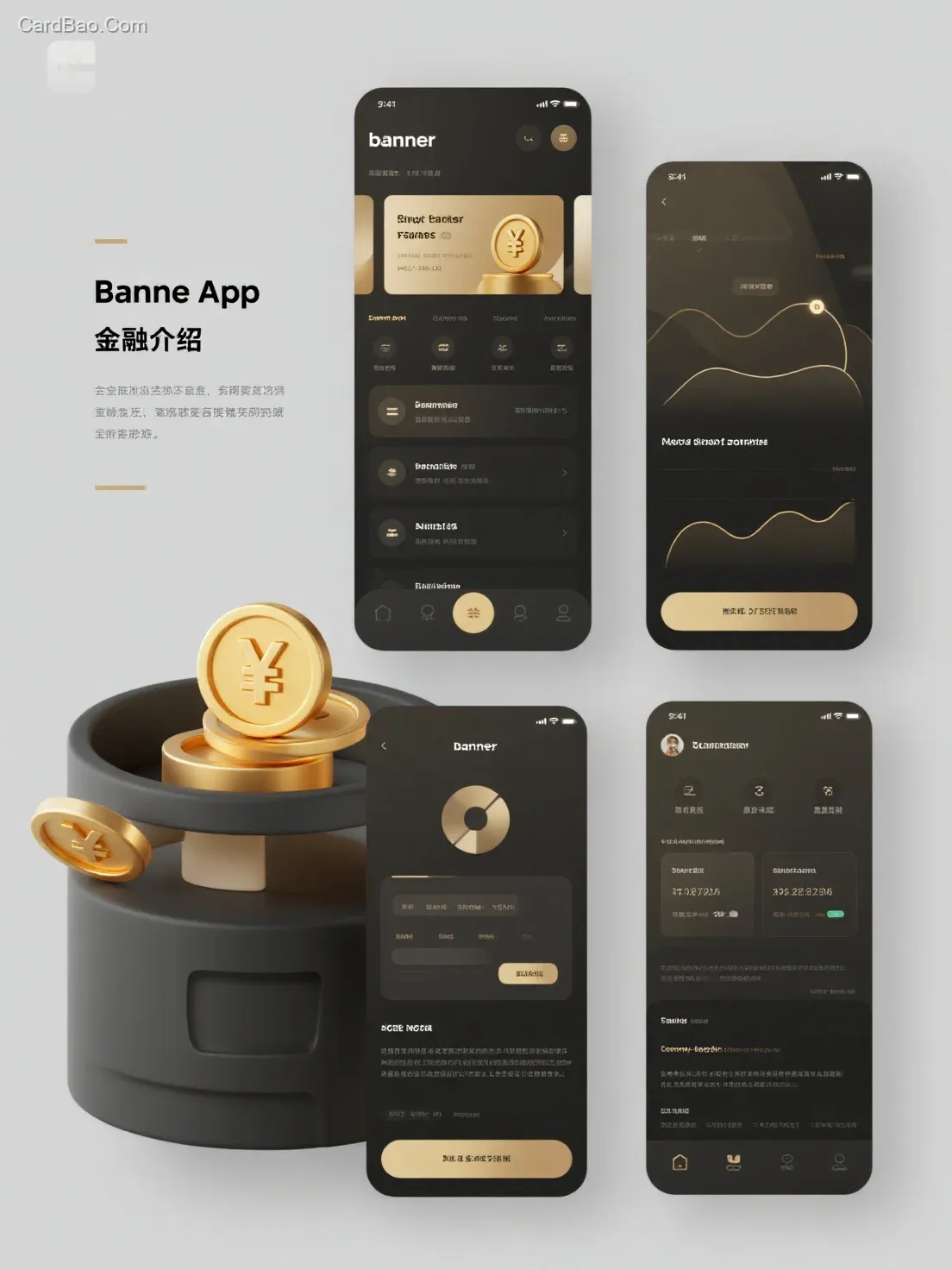 Financial App UI interface design, featuring 3D icons, a banner area, and a premium aesthetic