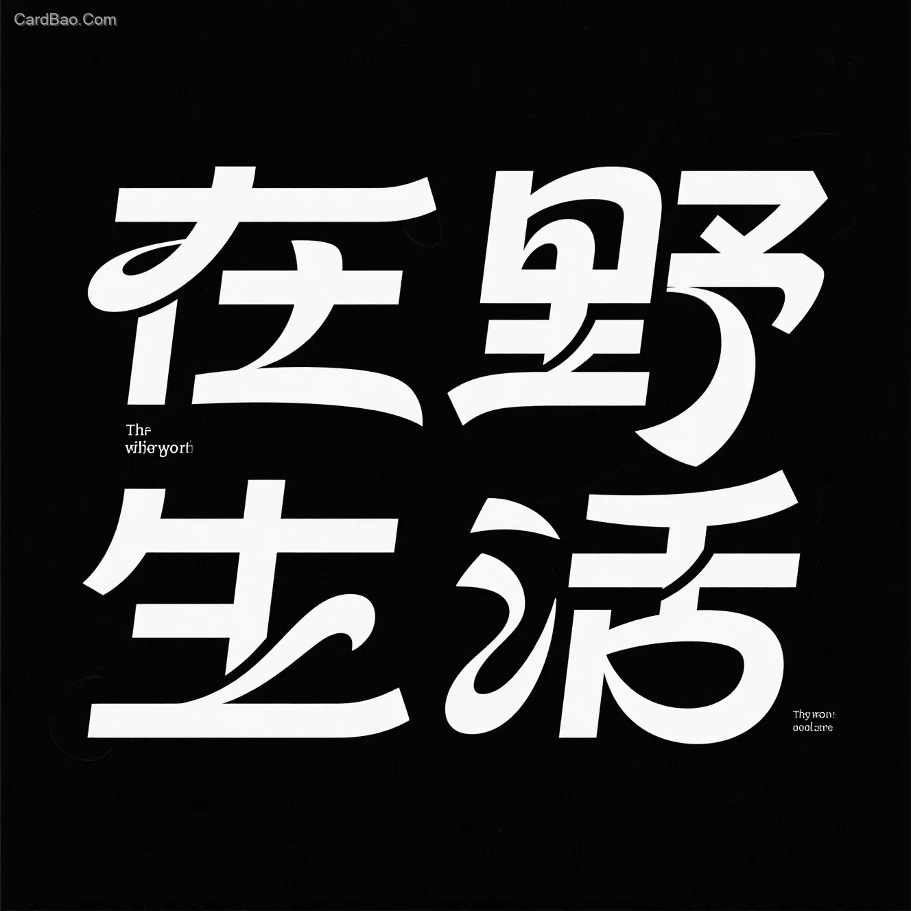 黑底白字,字体设计“在野生活”,字体风格简约现代且富有设计感。笔画形态独特,进行了艺术化处理,线条流畅且略带弧度,增添活泼灵动之感;整体结构规整,通过笔画的变形与点缀,呈现出时尚、新颖的视觉效果,契合青春、活力的主题。