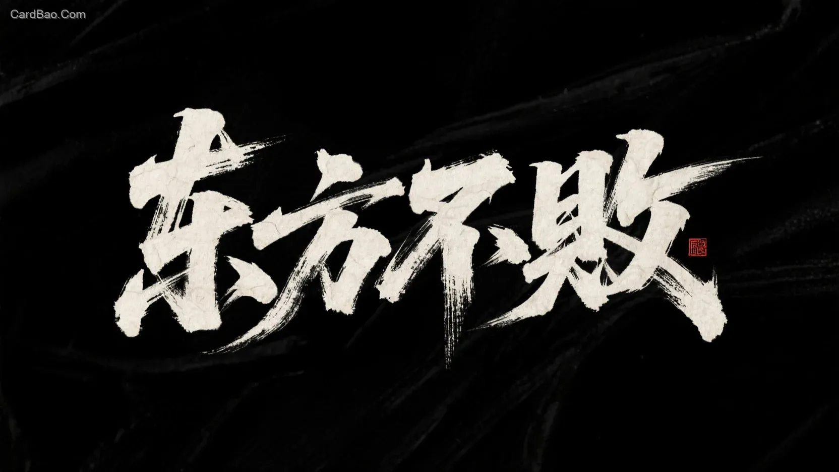 Title font design, the text "Dongfang Bubai" features a wild and unrestrained font style, with elegant and flowing strokes, full of dynamism and tension, incorporating flying white effects, white characters, and a pure black background.