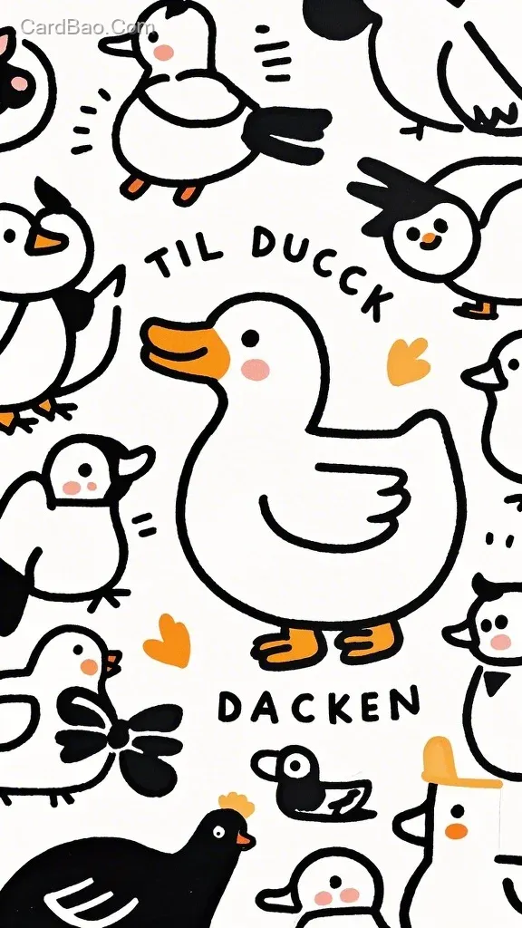 The visual center of the picture is a little duck. It is a simple drawing created based on this realistic duck photo. The small animal figure is composed of thick black lines and is very vivid. It is a line - drawn small illustration, a combination of a realistic photo and a line - drawn picture, with large areas of blank space, full of creativity, and a clean and simple background.