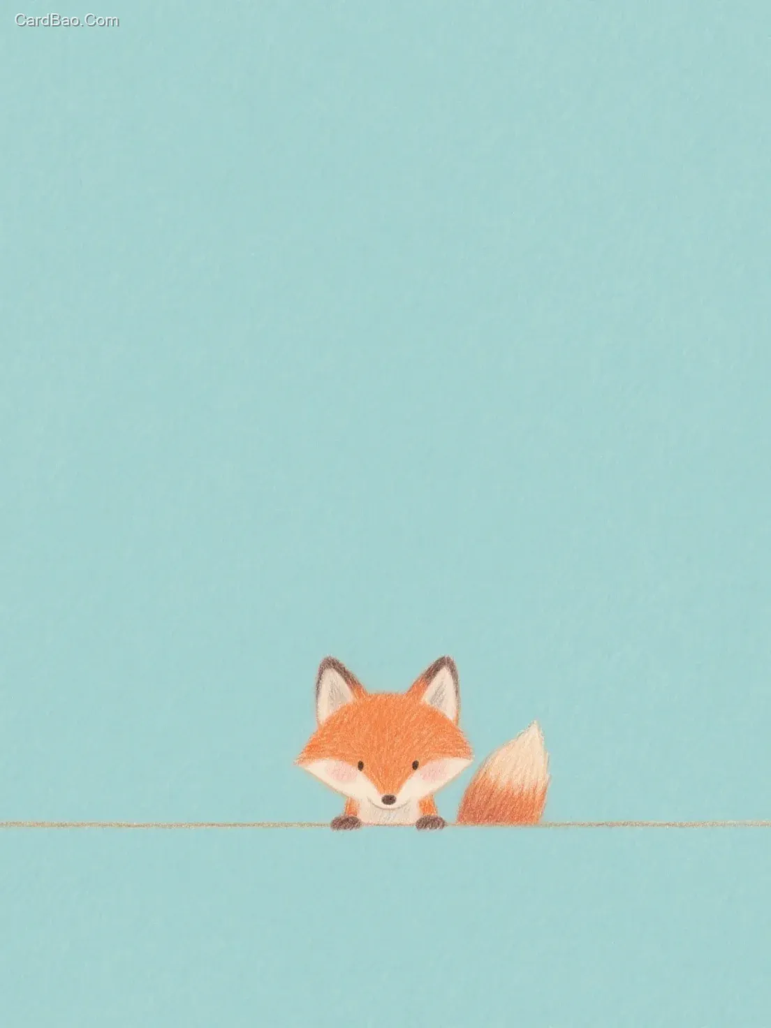 插画,绘本插画,治愈插画,画面大量留白中间一条横线,一只可爱的橘色小狐狸从横线下方探出半个小脑袋,还有一截小尾巴,皮肤质感,极简主义,大师级构图,8K,彩铅触感,纯色背景
