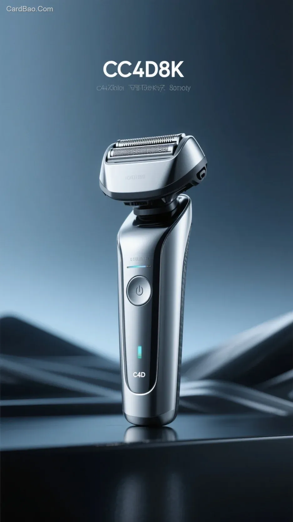 Image style: 3D rendering. High-end poster for electric shaver, characterized by a high-end, sophisticated, and minimalist aesthetic, with C4D texture, Octane Render, 8K ultra-high definition, and bright lighting.