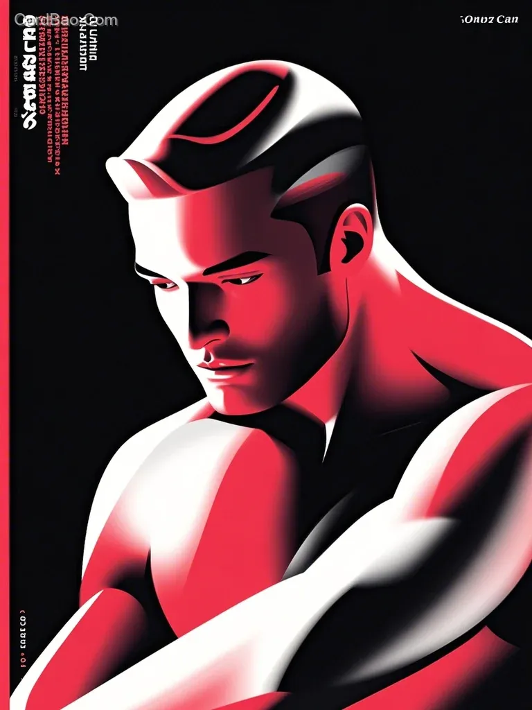 Minimalist Pop Art illustration, poster, magazine cover, leaflet, poster art, dynamic minimalist style, blurred forms, male beauty, profile view, light red combined with light black, black background, close-up, pure flat illustration