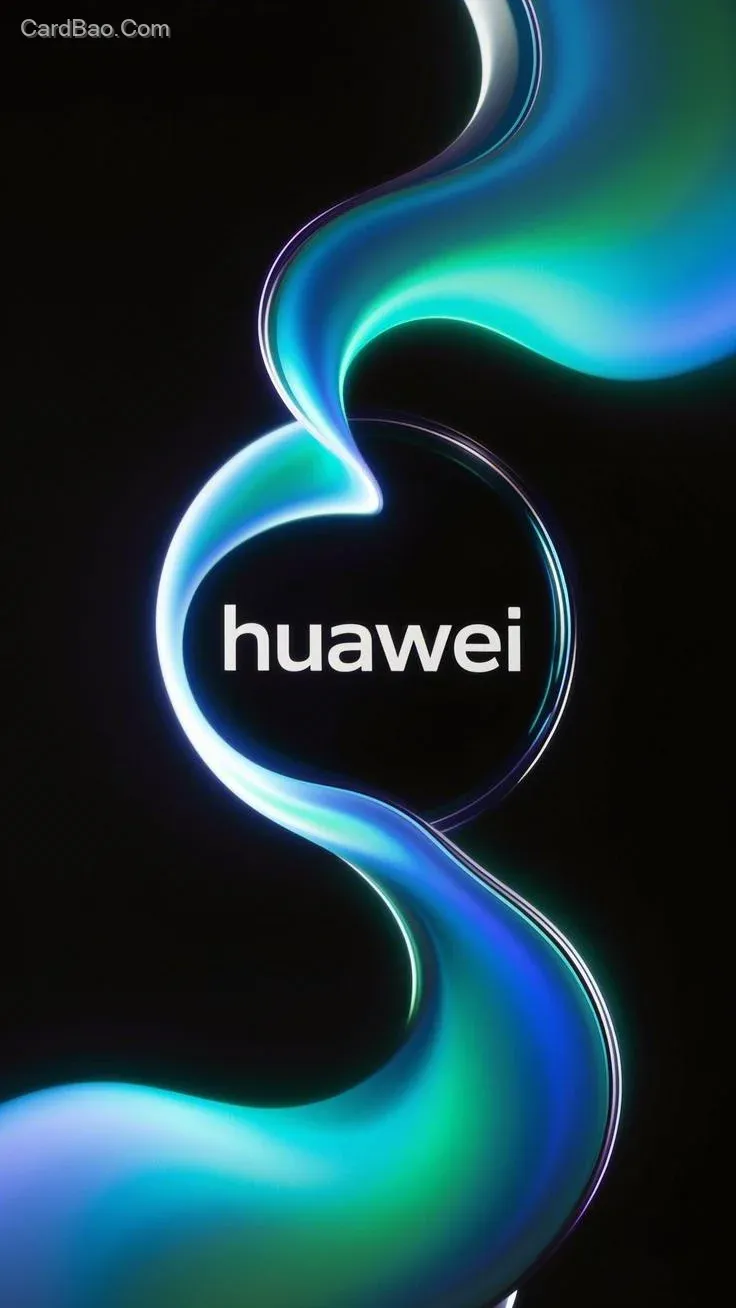 With "huawei" written in the center, it adopts an abstract flowing style—"Fluid Art"—characterized by diffuse gradients. Abstract flowing graphics serve as the main visual element, incorporating soft curves and organic shapes to evoke a sense of dynamism and artistry. The color palette features dazzling gradient hues, with teal flowing lines set against a dark background to enhance the visual perception of flow. The brand logo or product is showcased at the center, seamlessly integrated into the flowing graphics to form a harmonious whole, complemented by a hand-drawn texture that echoes the abstract motifs. Ideal for promoting creative industries, artistic brands, or health and lifestyle products.