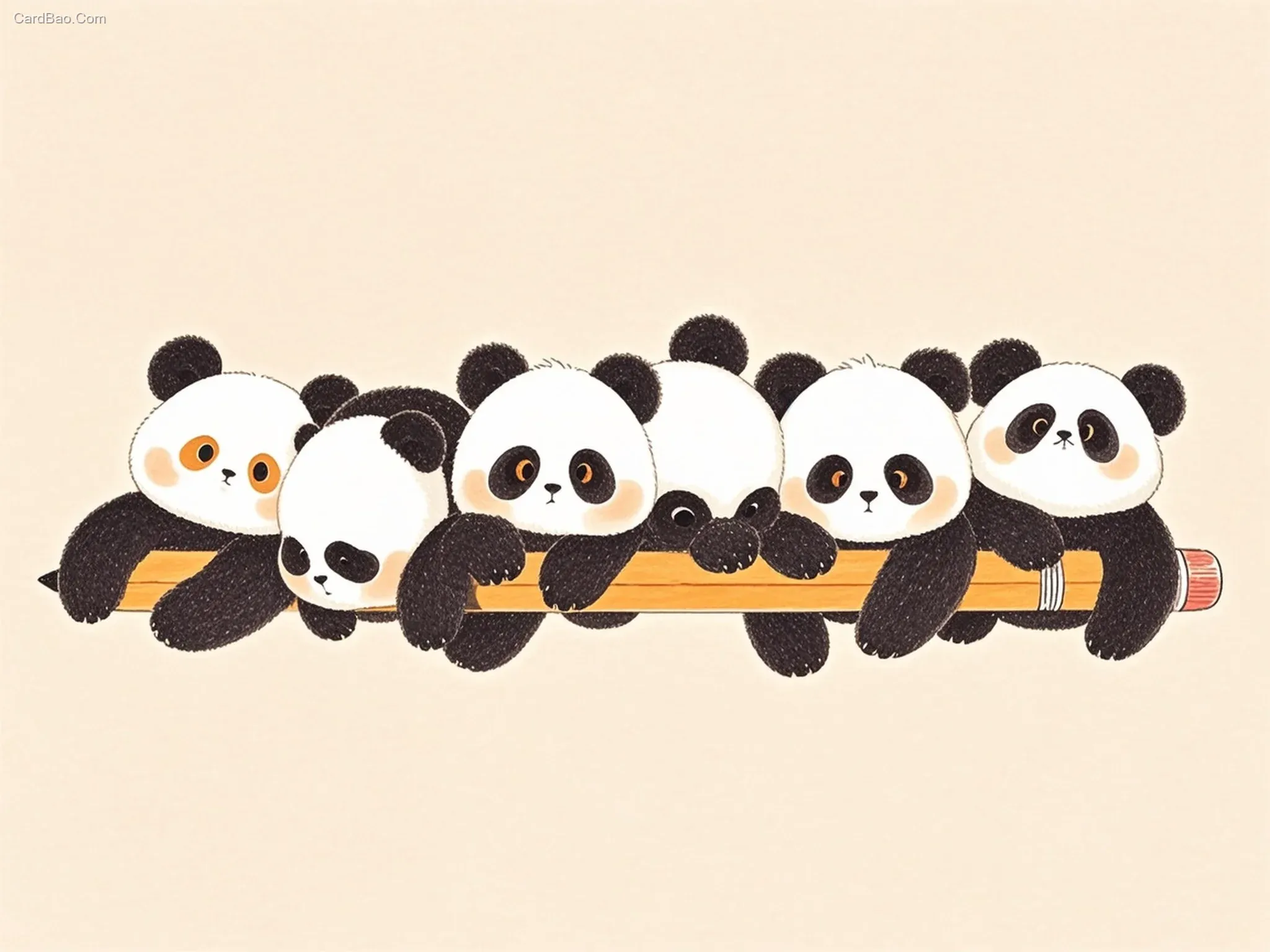 简笔画,一排可爱的小熊猫趴在一条直线上