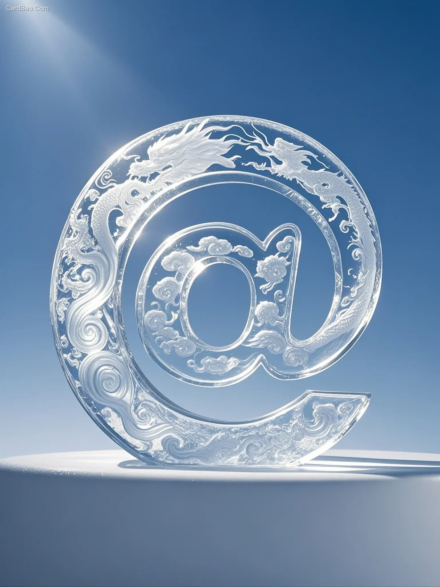 由冰制成的侧字母“@”,镶嵌着祥云和龙纹图案,