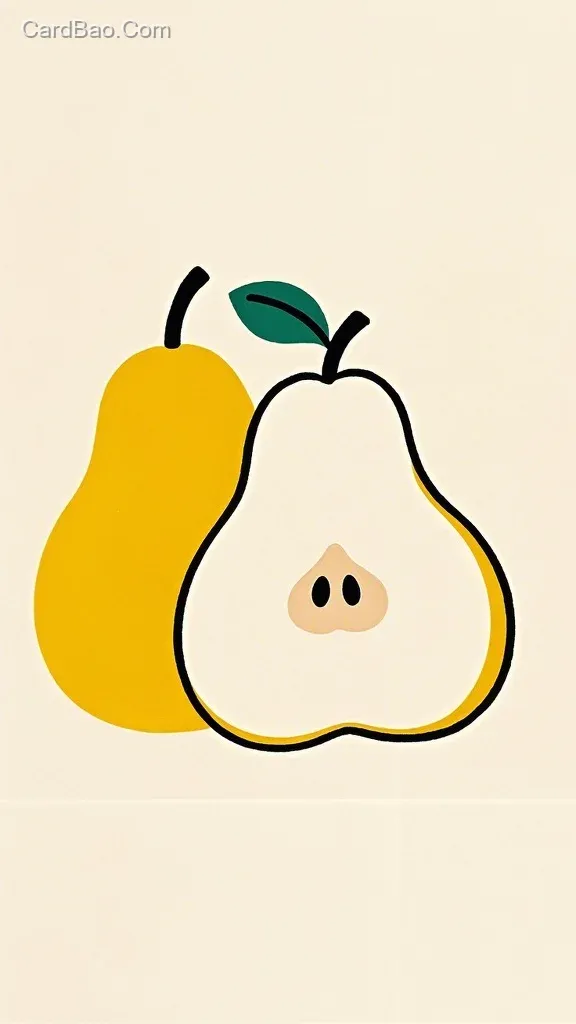 Simple drawing, cute illustration, Korean illustration, pear, clean, clean and bright background, wallpaper illustration, rounded lines, thick lines, simple drawing, extra thick lines