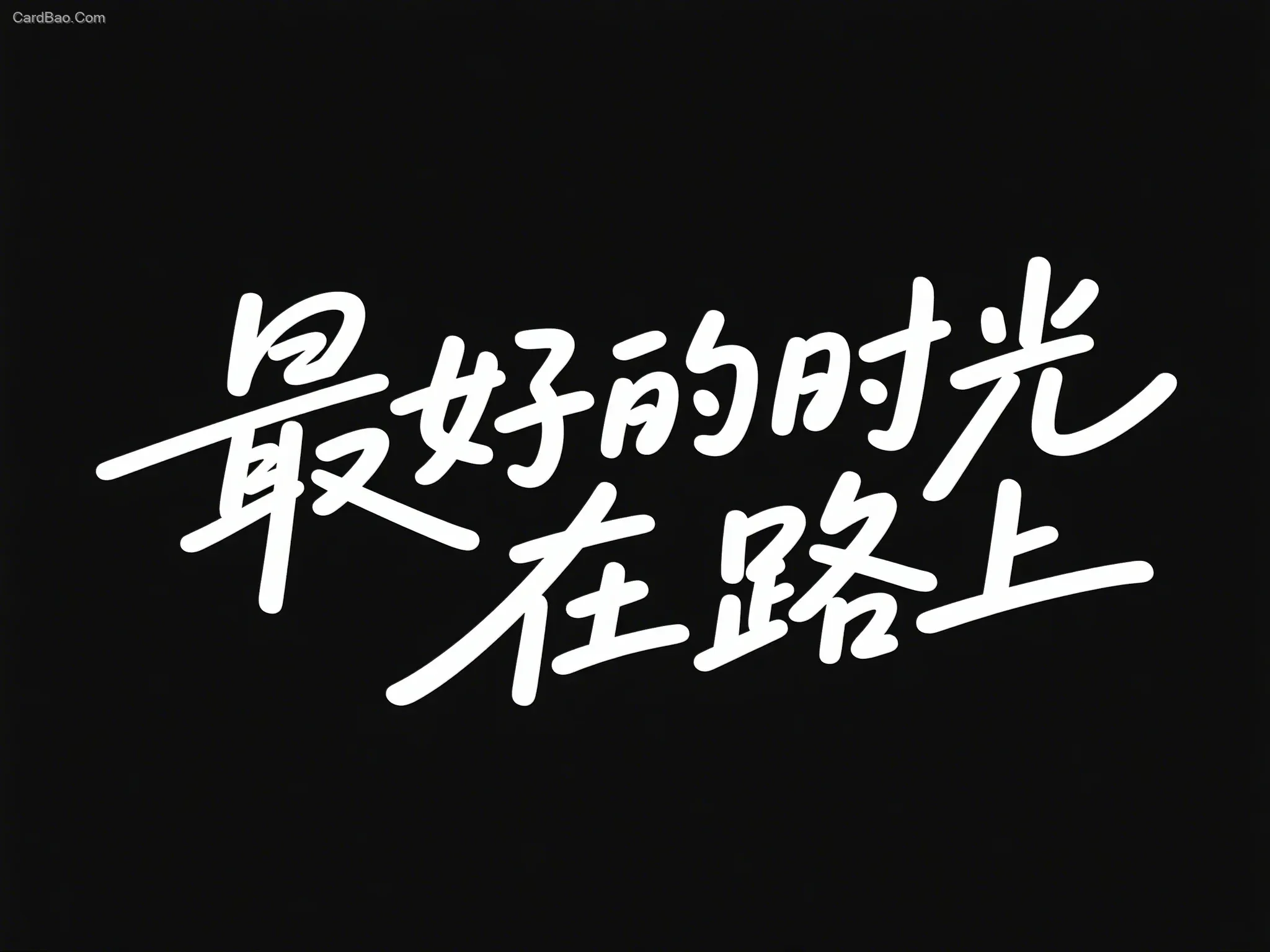黑底白字,手写字体,内容是 “最好的时光在路上",线条均匀流畅圆润纤细,收笔略有拖尾,起笔说利,结构清晰,偏几何感,笔画之间距离较匀,连笔,类似行书,是手写书法字