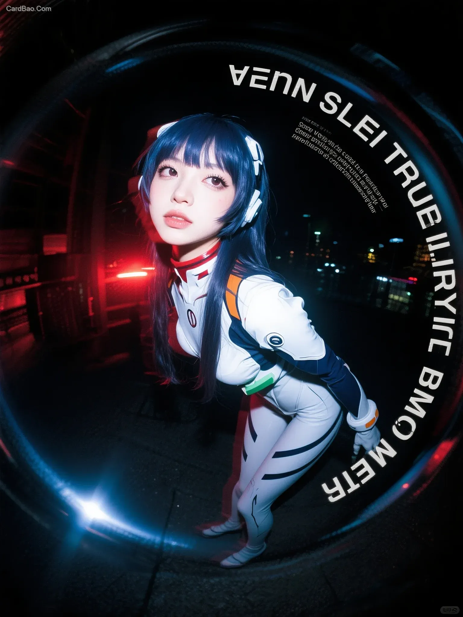 非对称,慢快门,夸张的视角,鱼眼镜头感,张扬的潮绫波丽女生,暗夜微光,对焦主体,随意抓拍,暗朦,光朦,红朦,蓝朦,过曝,褪色,泛白,强透视,浅景深,高噪点,胶片颗粒质感,名场面,现场感,情景写意,热成像,视觉冲击力,前卫艺术,细节丰富,杰作,英文文字信息环绕扫描
