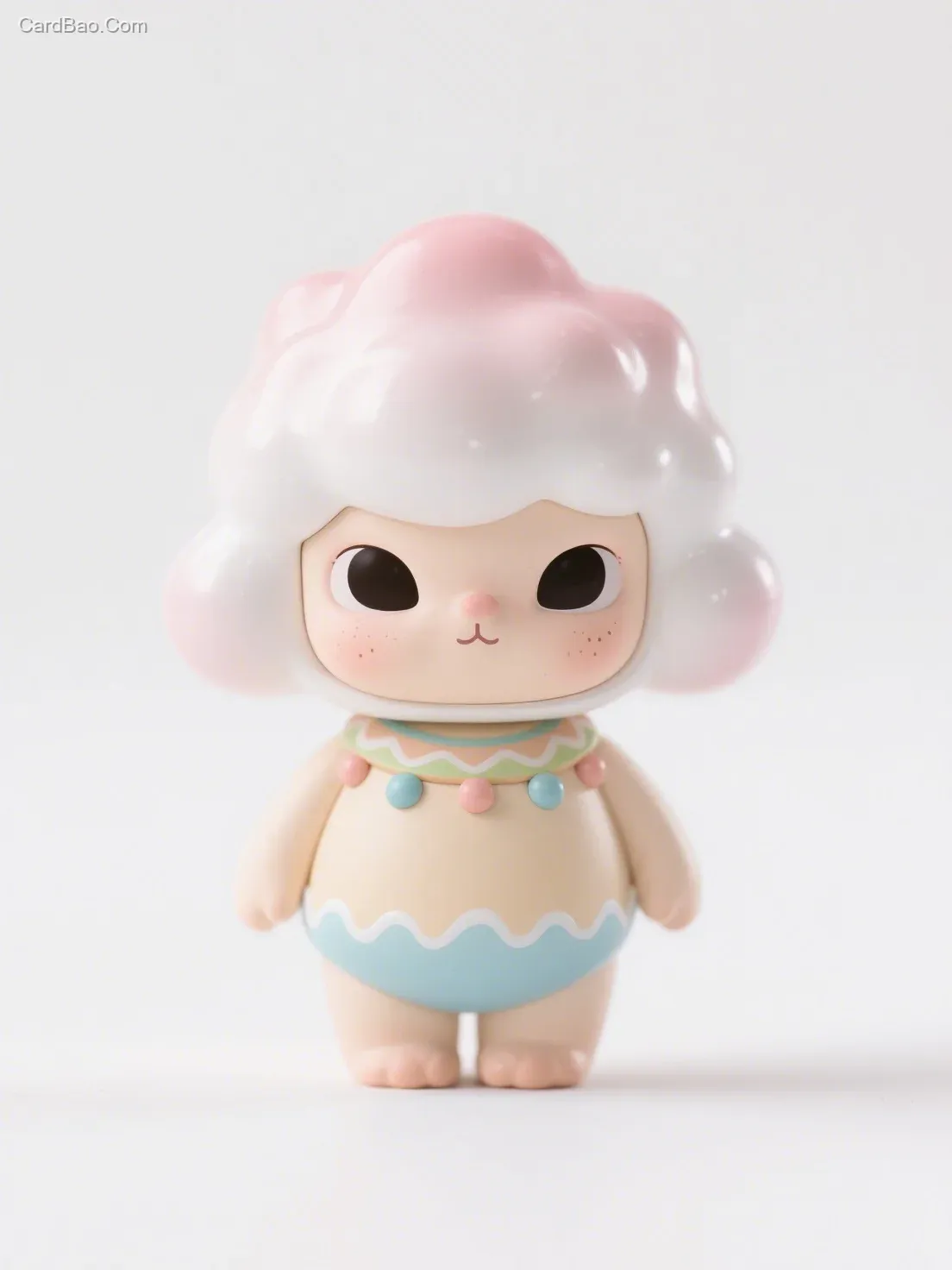 Cute Yunnan psychedelic mushroom, Pop Mart, model figurine, kawaii, chubby, real-life photography, sea foam, beige and pink, white background, soft colors, model, blind box toy, delicate gloss, clean background, 3D rendering, best quality