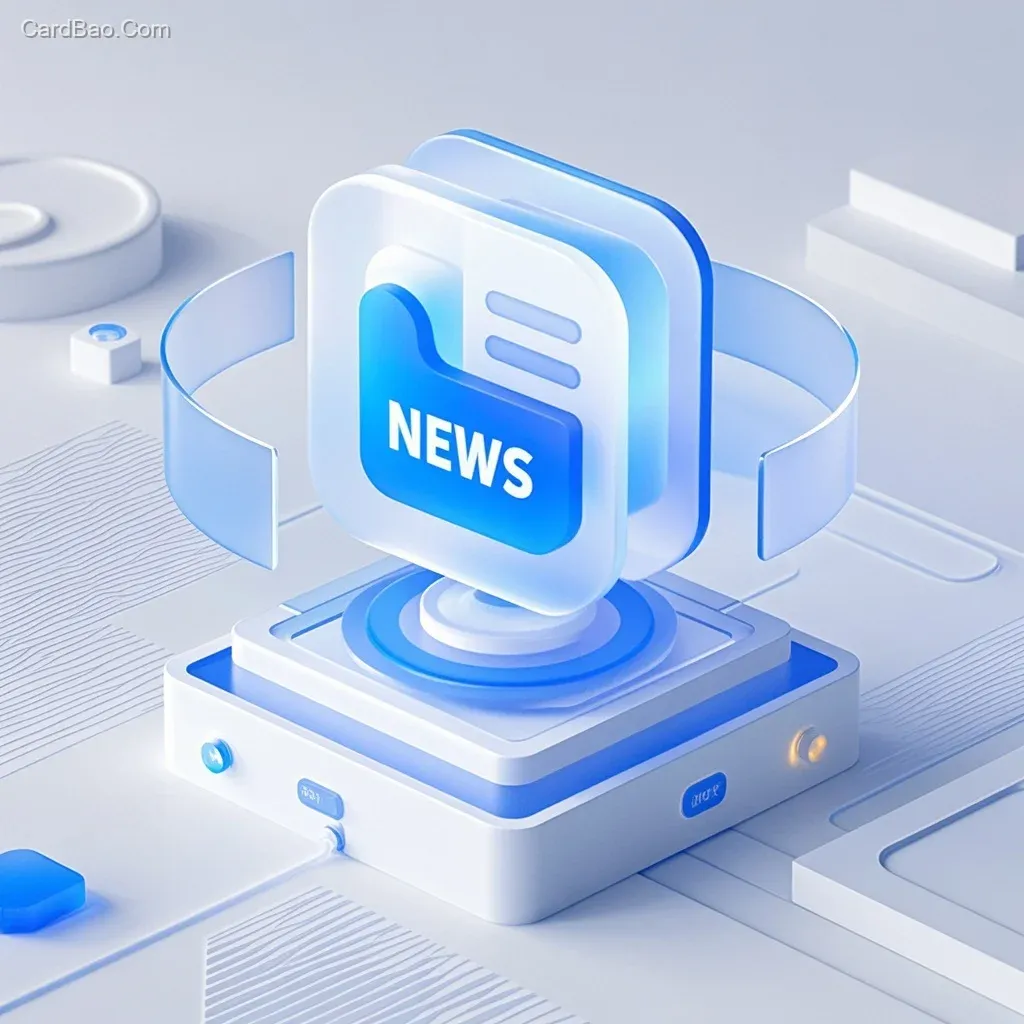 News图标,单元素,主色调蓝白,透明科技感,未来感,光滑透明材质,柔和光影,磨砂玻璃质感,简洁布局,等距视图,Blender,C4D,细节丰富,干净的背景。
