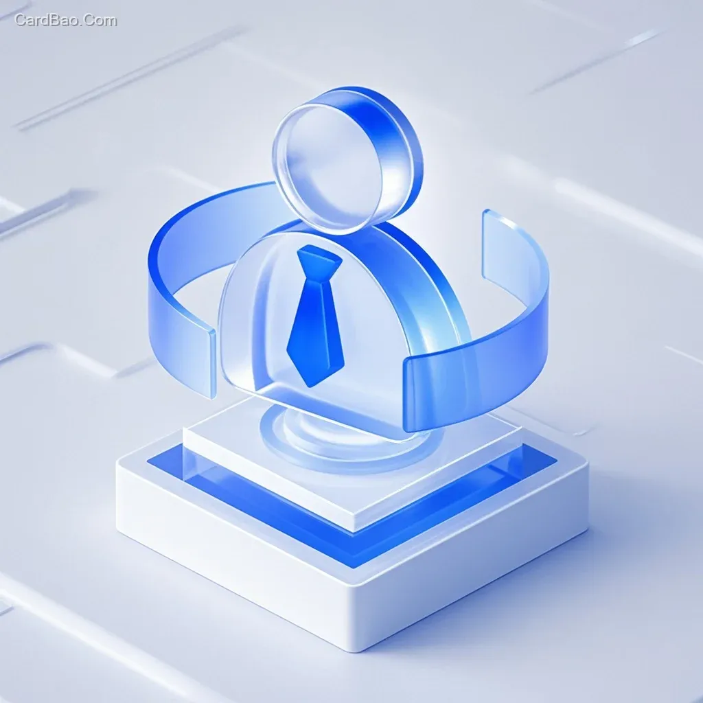 An icon of a person with a tie, transparent material, blue-white color palette, frosted glass texture, transparency, UI/UX design style, isometric perspective, dreamy style, white background, studio lighting, bright colors, 3D art, created with C4D software and Octane Renderer, Pinterest, Dribbble, Behance, highly detailed, high definition