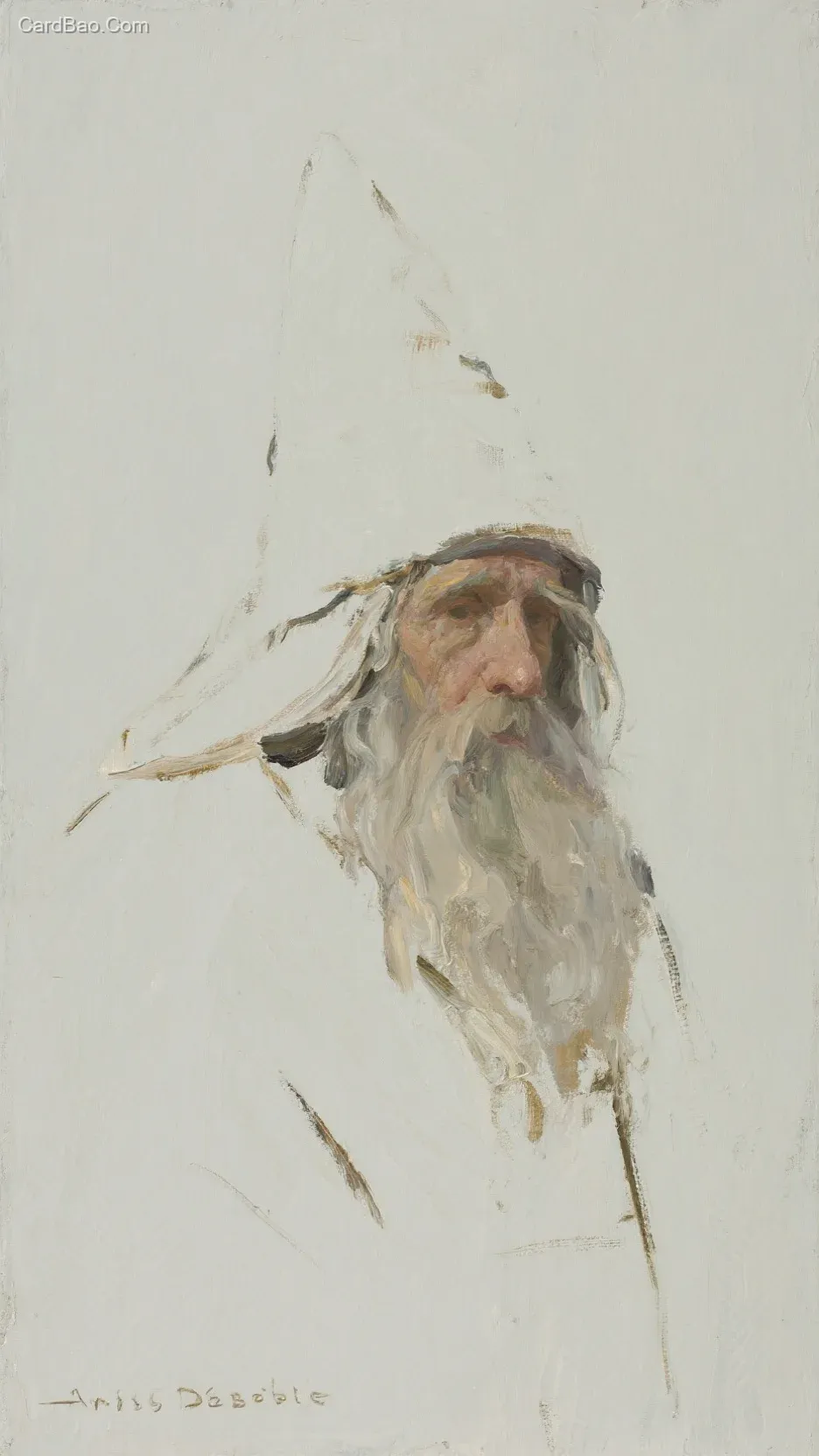 甘道夫,Ans Debije风格,油画,干净的纯色背景,松散的笔触绘画,现代极简主义主风格,简单的构图,最小细节,高清。