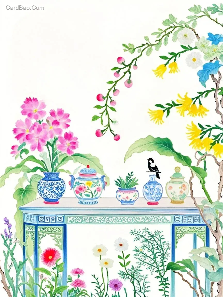 Chinese-style courtyard, garden filled with spring scenery, colorful traditional-style ink painting, Xingliu Star-3 Alpha