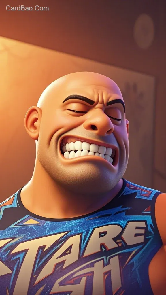 范迪塞尔的卡通图像,抽象,夸张,高清细节,橙色背景。迪士尼梦工厂风格。 2D卡通,伦勃朗光