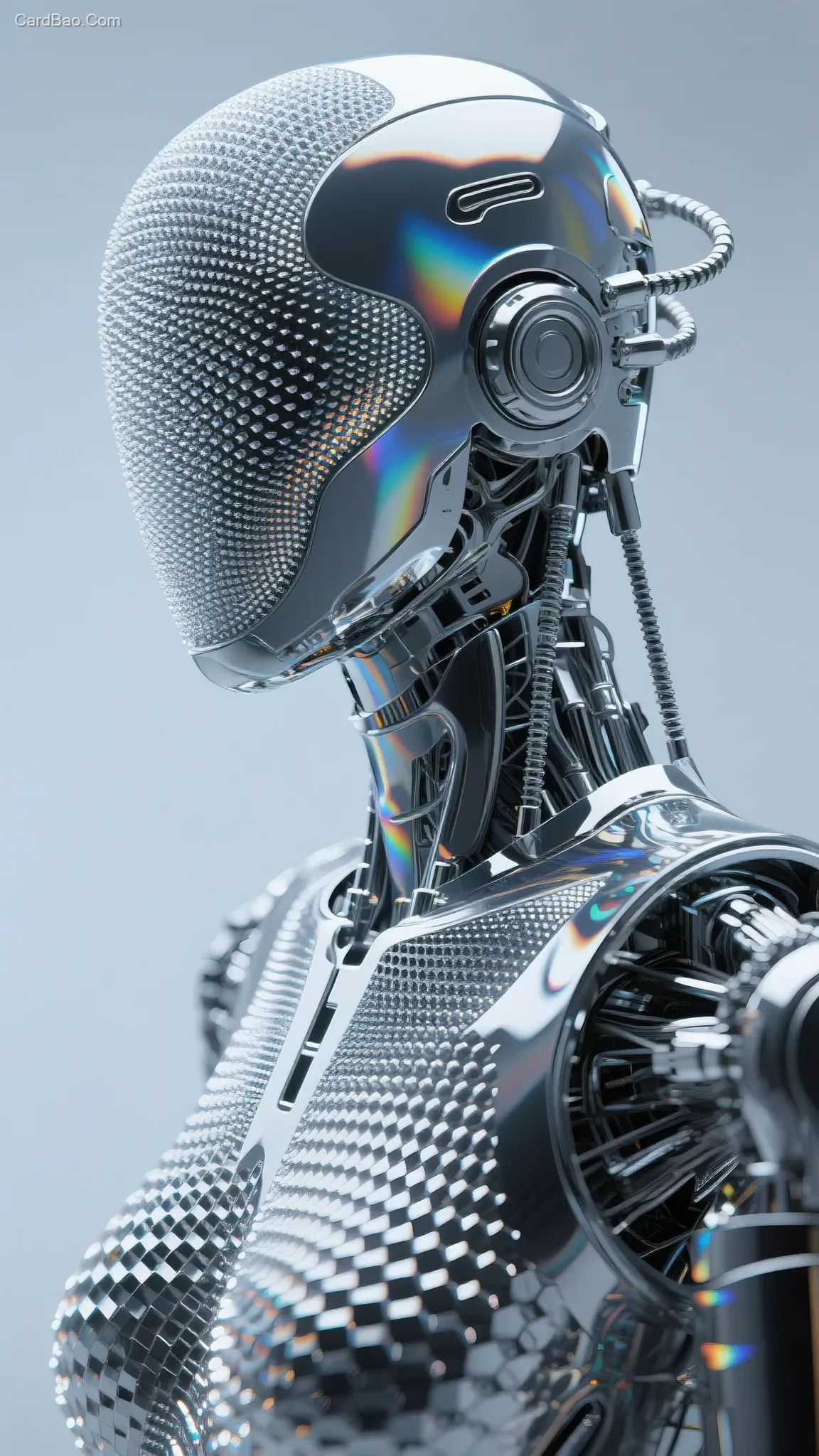 超材料视觉,纳米结构光学,负折射率,光子晶体,超表面反射,中性背景,Thomas Feichtner、Tokujin Yoshioka,Jolan van der Wiel,Joris Laarman、Ross Lovegrove,光学变幻表面,构成赛博朋克风格机械人