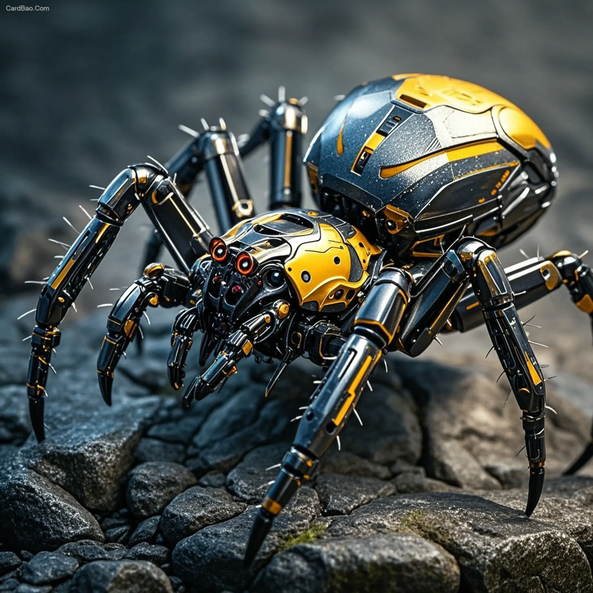 A mechanical spider constructed with mechanical structures, 3D, highly detailed, hunting dynamic
