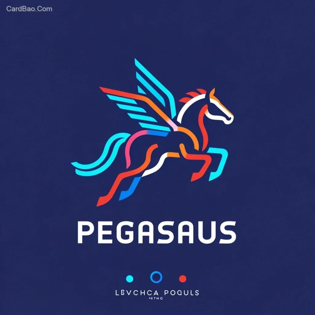 一个简洁的标志设计,标志的主体是一只插着翅膀的马轮廓,采用彩色线条绘制,以突出其清晰和简洁的特点。背景色选择深蓝色,以营造一种稳重而专业的氛围。在标志的下方或旁边,清晰地添加文字“PEGASUS”,使用与背景形成鲜明对比的颜色(如白色),确保文字的可读性和辨识度。