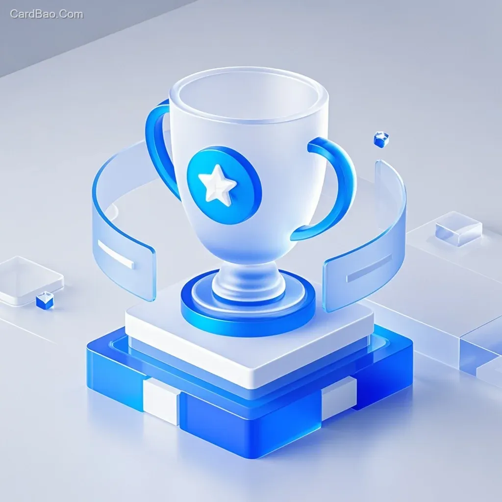 奖杯图标,单元素,主色调蓝白,透明科技感,未来感,光滑透明材质,柔和光影,磨砂玻璃质感,简洁布局,等距视图,Blender,C4D,细节丰富,干净的背景。