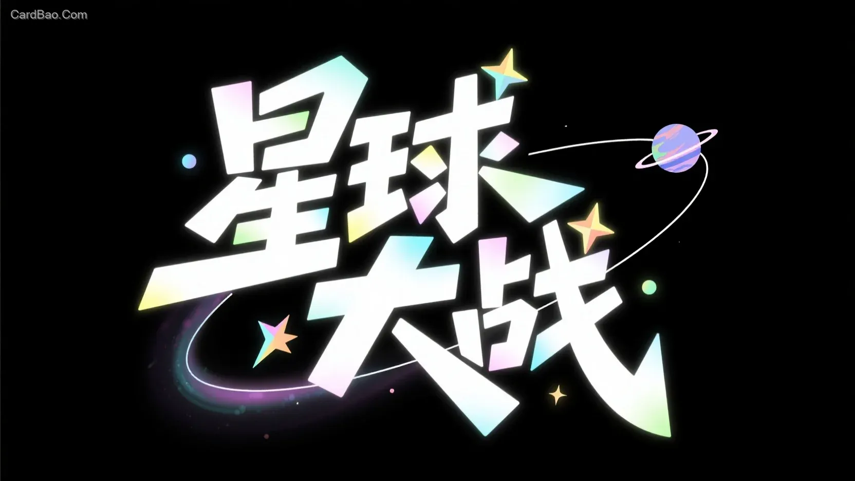 Black background, with white Chinese artistic characters "Star Wars" featuring an irregularly twisted font design; fluorescent gradient star-shaped particles embedded between the strokes, miniature planet silhouettes extending from the ends of the main strokes, a galactic halo effect added below the text, and cartoon-style meteor symbols used as stroke connection points.