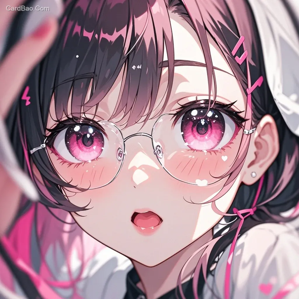二次元氛围感头像,女生,脸部特别放大,眼睛灵动,面颊绯红,眼里有小心心,粉嫩滤镜,人物特写,忽略背景,边缘动态模糊,Yaoi 风格,动漫风格,高质量,极致细节,32K