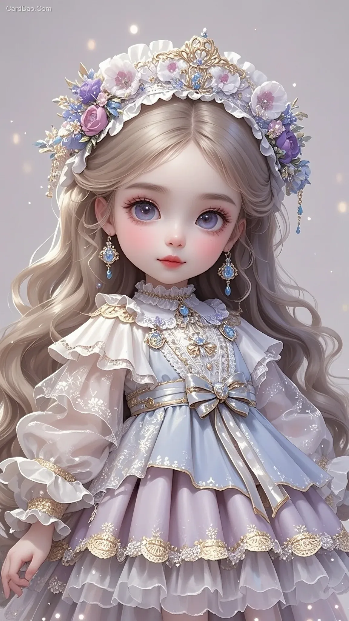 5歲小女孩,oc渲染,Q版,洛丽塔女孩,设计复杂唯美奇幻服饰,精致妆容,精美头饰,杰作,大师构图,梦幻背景,简约背景,古风,女孩,长发,灵动