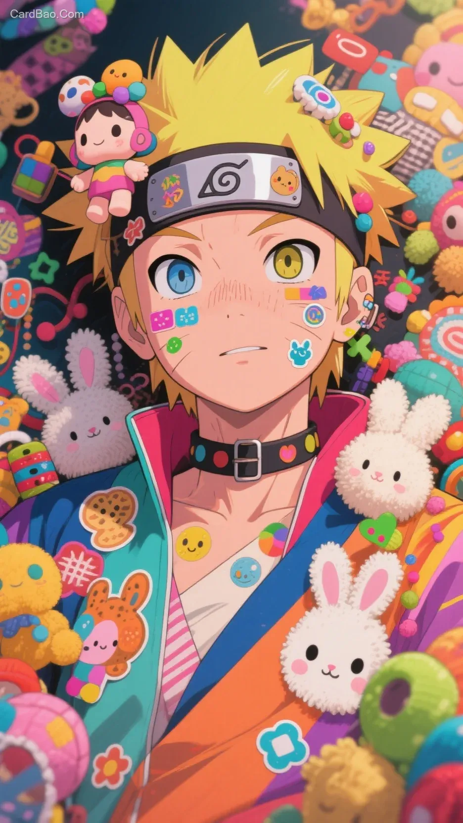 海报艺术,华丽的嘴唇,电影感,杰作,最佳质量,非常美观,插图,完美的构图,复杂的细节,细致的脸,动漫,真实的皮肤纹理纹理,1.2),8k,极其详细柔软,装饰,decora,decora,日本美学和时尚装饰,(((deco)))decora,东京时尚,五颜六色的衣服被其他五颜六色的物体包围在上面,娃娃在头上,毛绒玩具,项圈,动物,贴纸在脸上,在身体上,发饰。图片上不带字