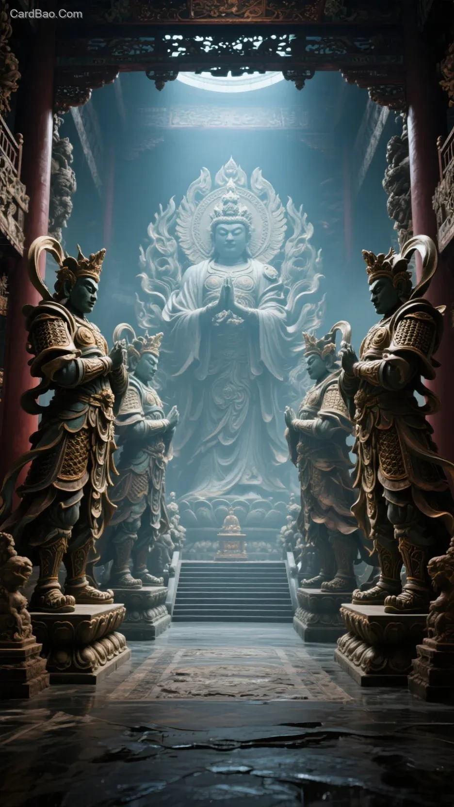 佛教四天王,灵异的幻境。高清画质,分立两侧,庙宇大殿