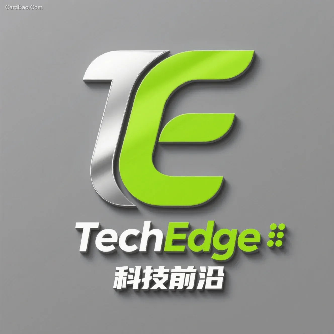 Below the graphic, the first line displays the English text "TechEdge," with "Tech" in white font and "Edge" in bright green. The second line presents the Chinese text "科技前沿" (Technology Frontier) in white, using a simple and elegant typeface that complements the English text.