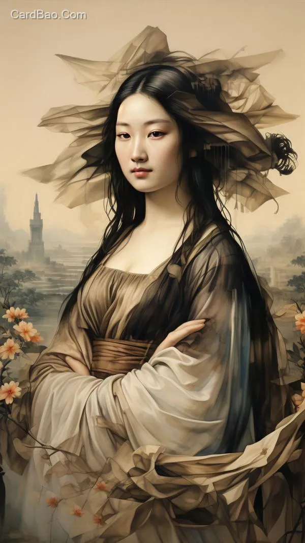 用中国传统绘画风格模拟一幅达芬奇的蒙娜丽莎