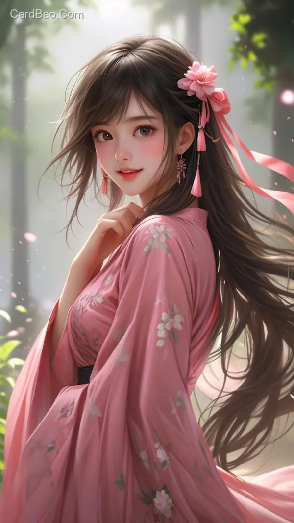 粉紅色衣服, 美女, 长发, 直发, 灵气, 全身, 微笑, 4K