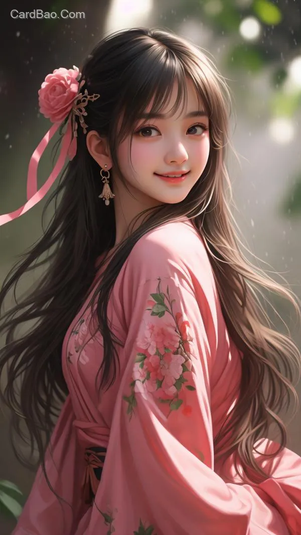 粉紅色衣服, 美女, 长发, 直发, 灵气, 全身, 微笑, 4K